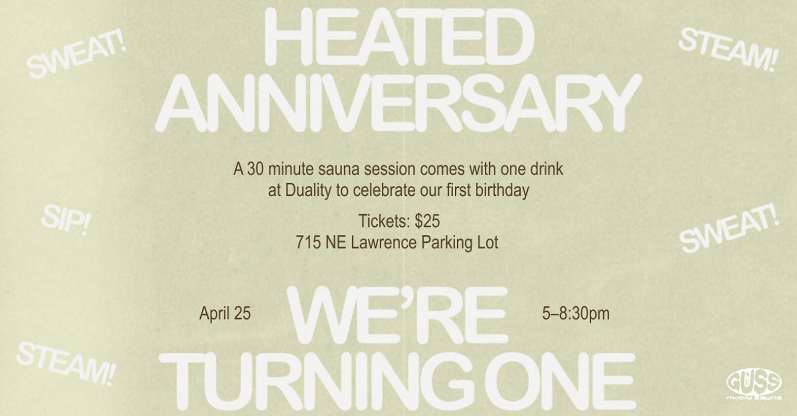 Each $15 ticket includes a 30-minute sauna session plus one drink at Duality.